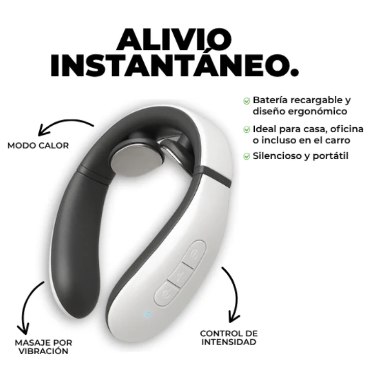 La tensión cervical es más común de lo que imaginas. Con nuestro masajeador cervical inteligente podrás aliviar el dolor y relajar tus músculos en cuestión de minutos. Su tecnología de calor y pulsaciones simula un masaje profesional, reduciendo el estrés y mejorando tu bienestar día tras día. Siente cómo tu cuerpo vuelve a estar ligero, relajado y libre de molestias. Gracias a su diseño ergonómico y modos personalizables, se adapta perfectamente a tu cuello, ofreciéndote un cuidado completo y efectivo. Disfruta de una sensación de bienestar profundo sin salir de casa, cada vez que lo necesites.